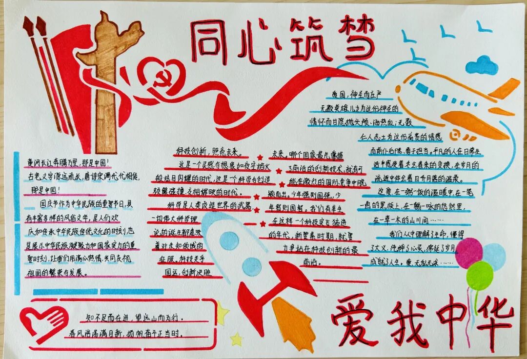 国庆、中秋双节将至,为深入学习贯彻二十大精神,弘扬和培育爱国主义精神,展现三建员工积极向上的精神风貌,公司组织了主题为“同心筑梦,礼赞祖国”的手抄报大赛。